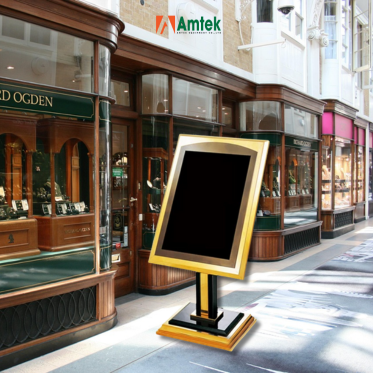 Không chỉ mang tính thẩm mỹ cao, bảng còn thể hiện sự chỉn chu trong từng chi tiết – từ khung viền kim loại sáng bóng đến chân đế vững chắc, giúp tổng thể luôn cân đối và bền đẹp theo thời gian.