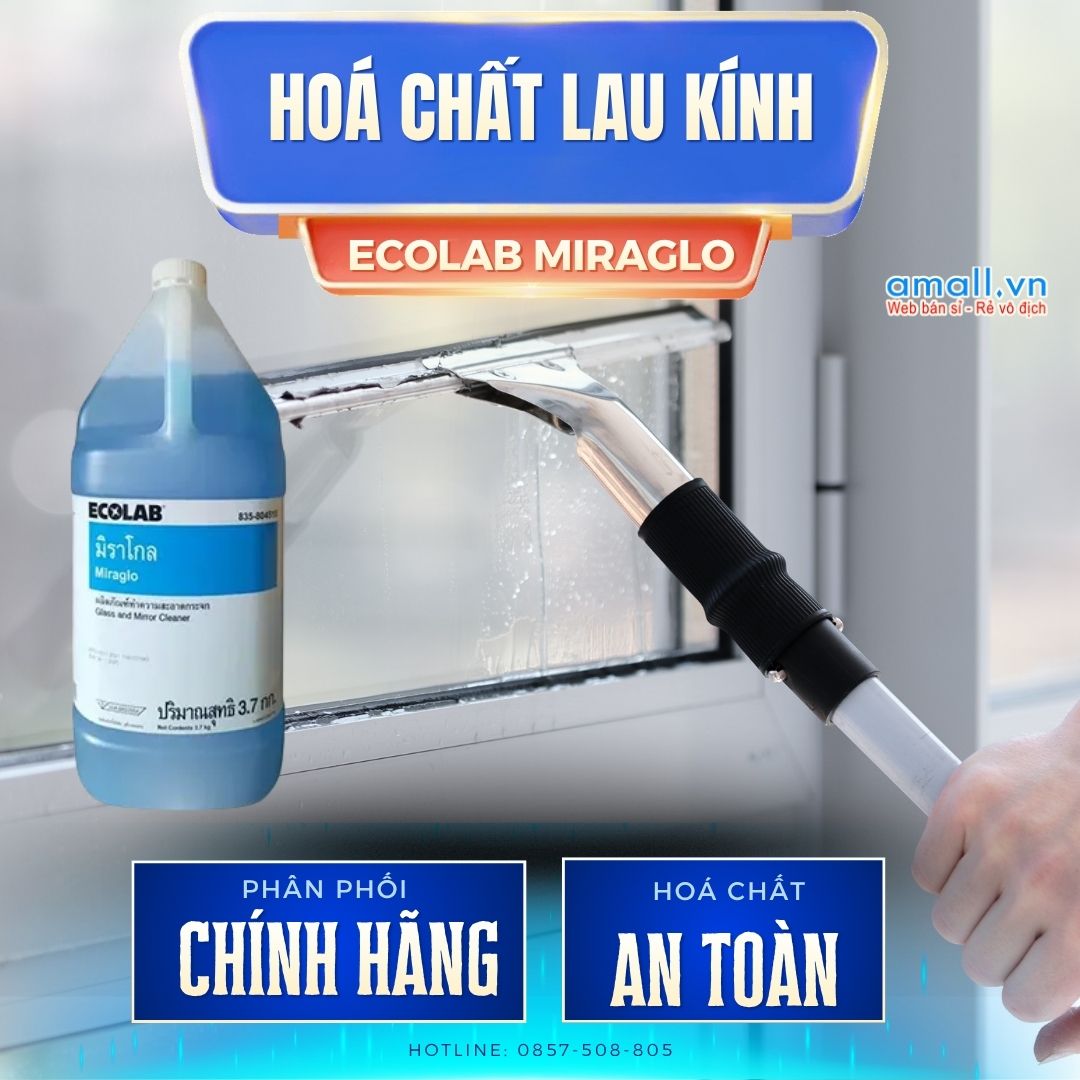 Sử dụng Ecolab Miraglo là giải pháp hiệu quả để xử lý vấn đề này. Sản phẩm có khả năng bay hơi nhanh, không để lại vệt sau khi lau, giúp bề mặt kính luôn sáng bóng và trong suốt.
