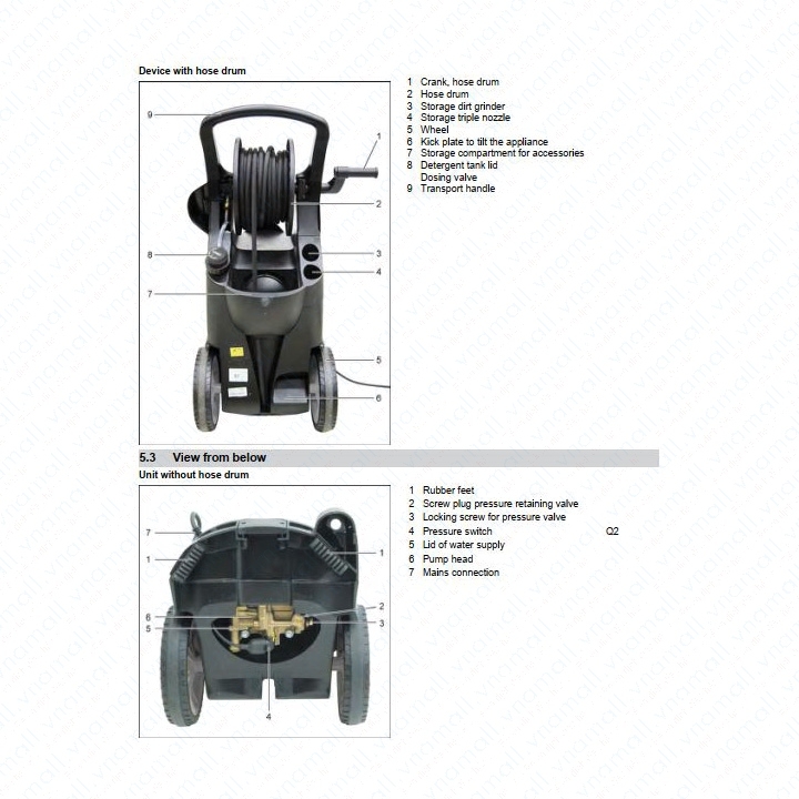 Áp lực phun tối đa 250 bar: Cho phép loại bỏ những vết bẩn cứng đầu nhất một cách dễ dàng và nhanh chóng.