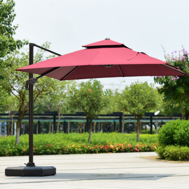 Kích thước 3 x 3m mang lại diện tích che phủ rộng rãi, phù hợp cho nhiều không gian khác nhau. Tán ô lệch tâm giúp người dùng có thể tận dụng tối đa bóng mát mà không bị vướng cột giữa. -