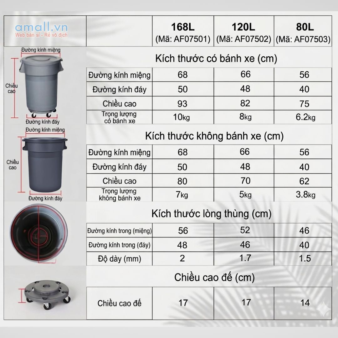 So sánh chi tiết các loại thùng rác 80L - 120L - 168L