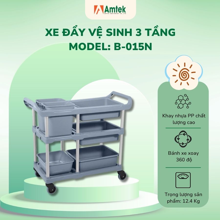 Xe đẩy vệ sinh 3 tầng model B-015N ra đời nhằm giải quyết triệt để vấn đề đó. Thiết kế chuyên dụng, tải trọng cao và vận hành linh hoạt giúp tối ưu quy trình thu dọn một cách khoa học, gọn gàng.
