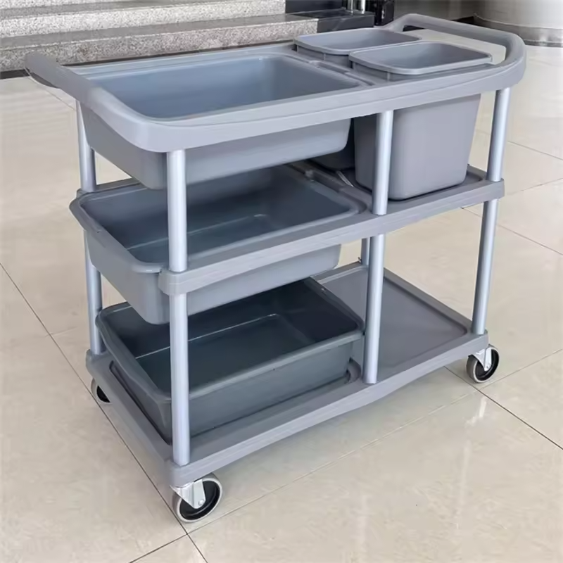 Trong ngành dịch vụ ăn uống, việc thu gom và vận chuyển bát đĩa một cách nhanh chóng, hiệu quả là điều vô cùng quan trọng. Xe đẩy vệ sinh 3 tầng Model: D-015N chính là giải pháp tối ưu, mang đến sự tiện lợi và chuyên nghiệp cho không gian bếp của bạn.