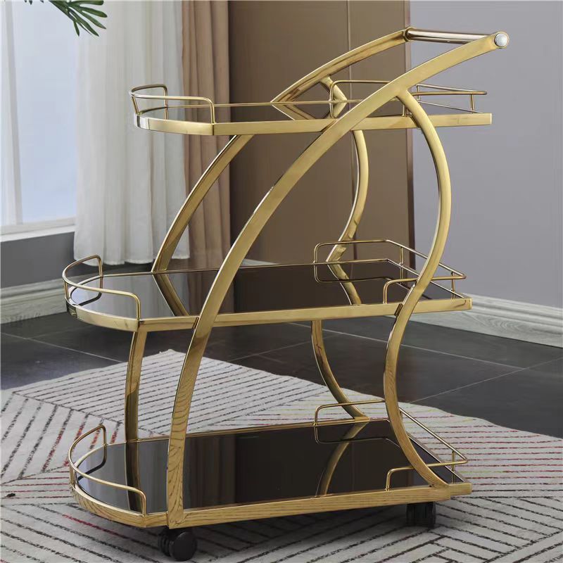Phiên bản vàng được thiết kế hướng tới phong cách hoàng gia, sang trọng và đẳng cấp. Bề mặt inox mạ vàng sáng bóng giúp chiếc xe nổi bật giữa không gian tiệc, nhà hàng hoặc khách sạn. Thiết kế hai tầng tiện lợi giúp sắp xếp ly, chai rượu và phụ kiện một cách gọn gàng, thuận tiện khi di chuyển và phục vụ.