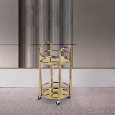 Chiếc xe phục vụ rượu mạ vàng tròn được thiết kế với kiểu dáng nhỏ gọn, phù hợp cho các không gian nhà hàng, quầy bar, hoặc khu vực tiếp khách. Khung inox mạ vàng sáng bóng tạo nên vẻ ngoài tinh tế, vừa đảm bảo độ bền, vừa mang lại nét sang trọng. Phần mặt gỗ chắc chắn, dễ vệ sinh, giúp việc phục vụ rượu trở nên chuyên nghiệp và thuận tiện hơn.